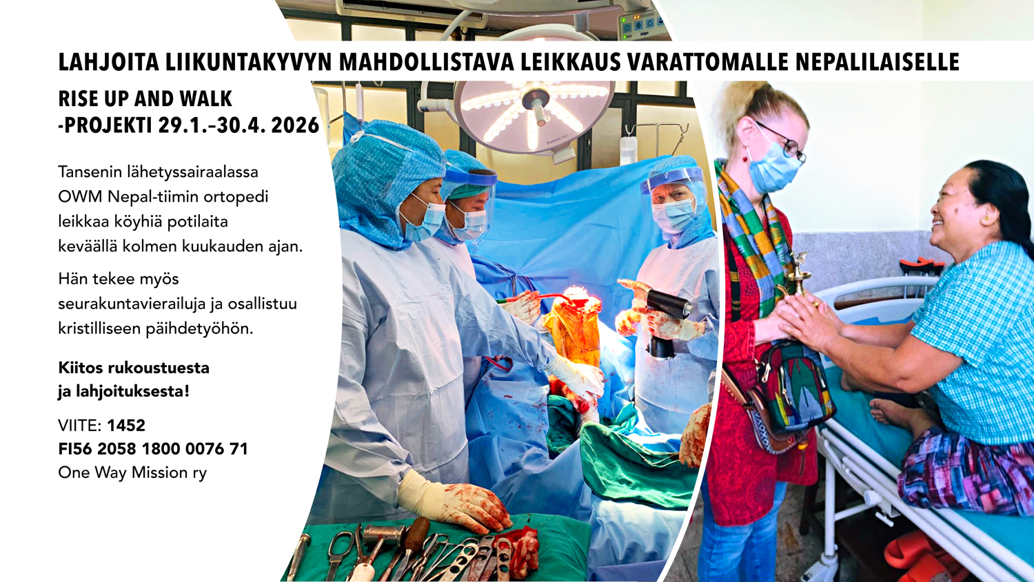 One Way Mission2026-02-04 06:00:482026-02-02 14:21:03Leikkauksilla liikuntakykyä varattomille NepalissaUusi työkenttämme – Pakistan